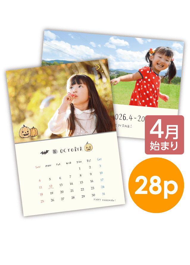 写真を入れるだけで、おしゃれで楽しいカレンダーが出来上がります♪