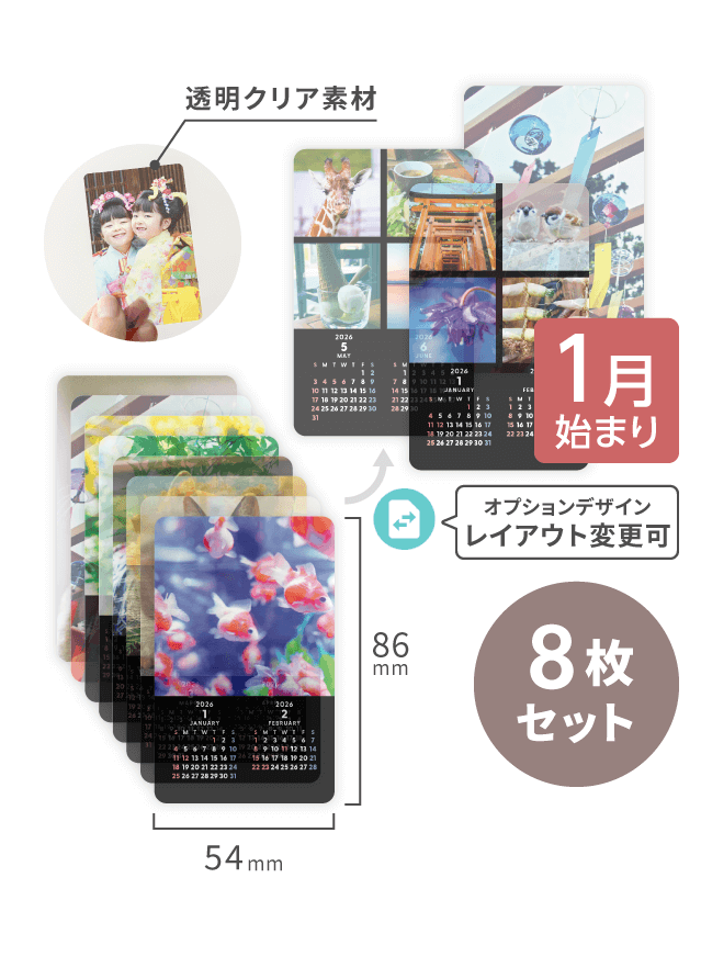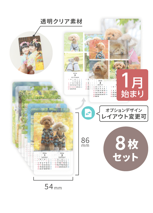 2ヶ月のカレンダーにお気に入りの写真を入れたカレンダーカードを作ることができます。
