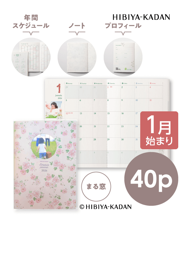 HIBIYA-KADAN Flower 手帳 -2026年1月始まり- ピンク