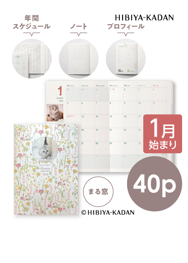 HIBIYA-KADAN Flower 手帳 -2026年1月始まり- ホワイト